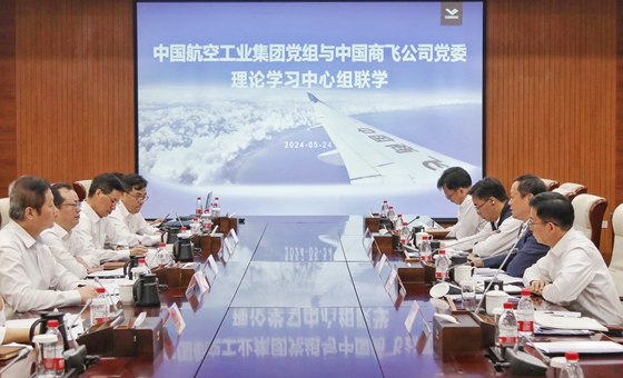 為深入學(xué)習(xí)貫徹習(xí)近平總書(shū)記重要指示精神,推動(dòng)黨紀(jì)學(xué)習(xí)教育走深走實(shí),堅(jiān)定不移推進(jìn)大飛機(jī)事業(yè)和航空強(qiáng)國(guó)建設(shè),2024年5月24日,中國(guó)商飛公司黨委與中國(guó)航空工業(yè)集團(tuán)黨組在中國(guó)商飛總裝制造中心浦東基地聯(lián)合開(kāi)展理論學(xué)習(xí)中心組學(xué)習(xí)。中國(guó)商飛公司黨委書(shū)記、董事長(zhǎng)賀東風(fēng),中國(guó)航空工業(yè)集團(tuán)黨組書(shū)記、董事長(zhǎng)周新民共同主持學(xué)習(xí)活動(dòng)。雙方理論學(xué)習(xí)中心組成員參加學(xué)習(xí)。