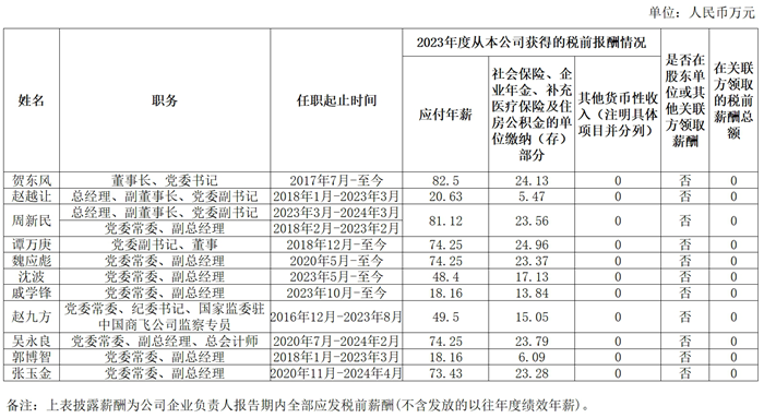 中國商用飛機(jī)有限責(zé)任公司企業(yè)負(fù)責(zé)人2023年度薪酬情況