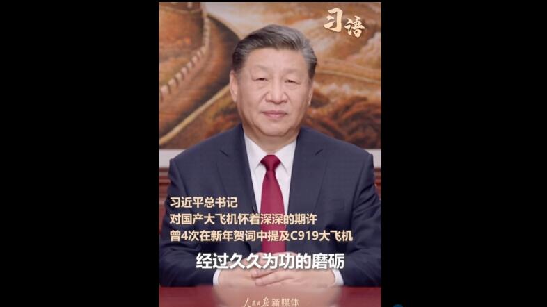 2017年12月31日,習(xí)近平總書記在2018年新年賀詞中提到,2017年科技創(chuàng)新、重大工程建設(shè)捷報(bào)頻傳,C919大型客機(jī)飛上藍(lán)天,為中國(guó)人民迸發(fā)出來的創(chuàng)造偉力喝彩。(摘自新華社文章)